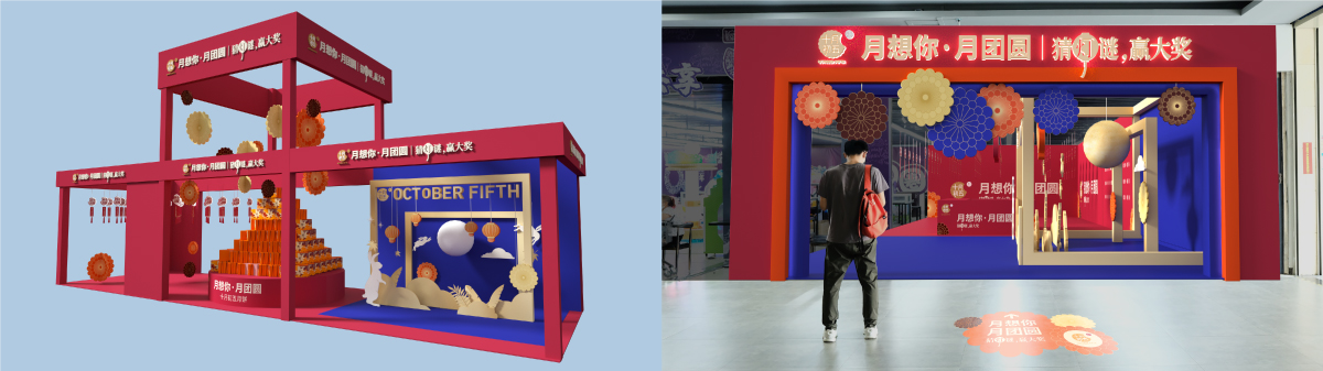 中秋节是中国传统节日,承载着深厚的文化内涵和家庭团聚的情感寄托。月饼是中秋节不可或缺的象征物,其圆形象征着天地人和、家人团圆,寓意完整和谐、美满幸福,赠送和品尝月饼已经成为人们庆祝中秋节的标志性行为。 中秋节购买月饼是一个必然且庞大的消费需求,如何让十月初五的月饼在众多品牌中脱颖而出并为消费者选择,需要在渲染购买场景上下足功夫,引起消费者的情感共鸣。 回顾十月初五现有的营销渠道,我们发现,无论是线上还是线下的销售终端,在视觉呈现上存在着以下三个问题: